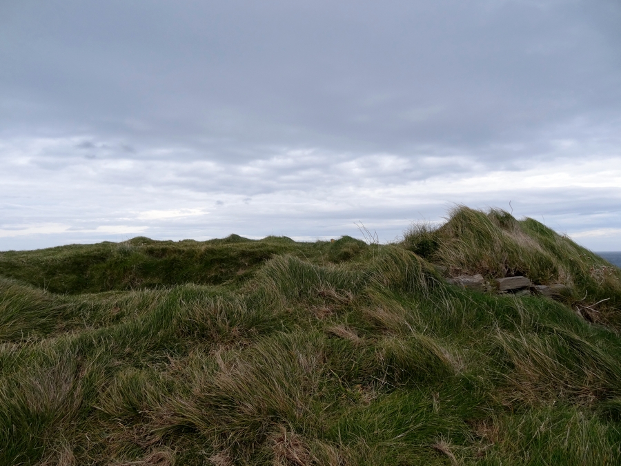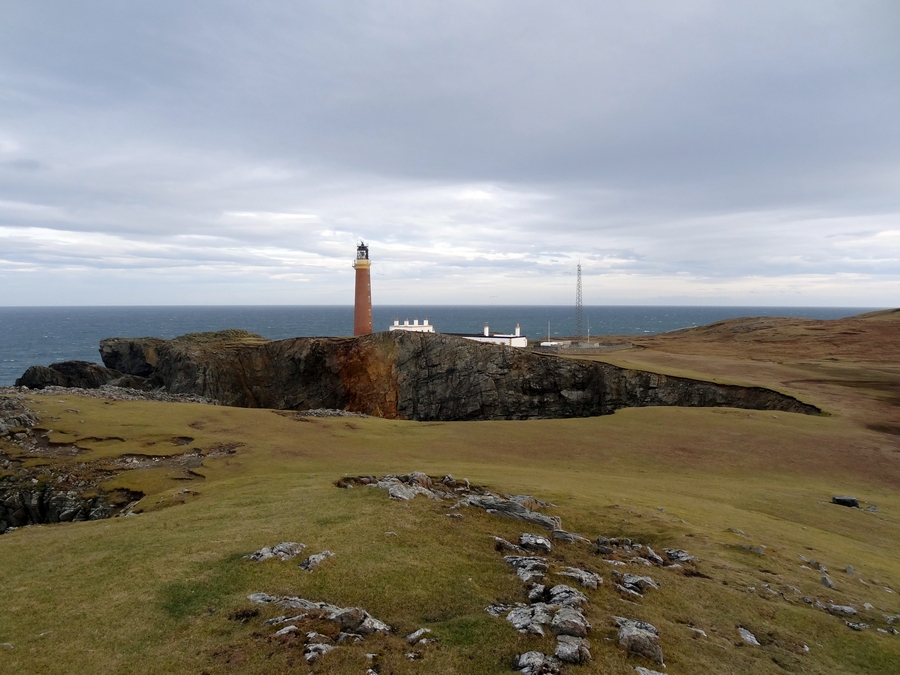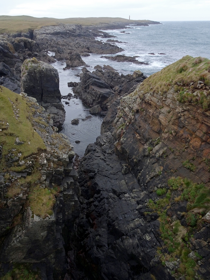 We headed up to the Butt of Lewis and to Port Ness. The wind was really strong, so using the Canon 1Ds on the tripod was out of the question. I had to resort to the EOS-M. From there we headed up to the lighthouse. The wind was that strong, the car was rocking in the wind. Photography was almost impossible, as we were getting buffeted in the wind. I had to lie on the ground, as it was the only way to get photographs. Returning from the lighthouse we stopped off at Dun Eistean. This required about a mile drive on a rough track to get to it. Dun Eistean was the site of an old fort, it is basically just a small mound of earth now, but it offered a decent view back up towards the lighthouse. The fort was actually on an island, and there was a steel bridge to take you over the 50 foot high gorge that separated the island from mainland of Lewis. There was a terrible smell on the island, at first I thought it was Elaine, but she denied it and blamed the goose droppings that littered the area instead. You had to watch where you were walking as the stuff was everywhere.