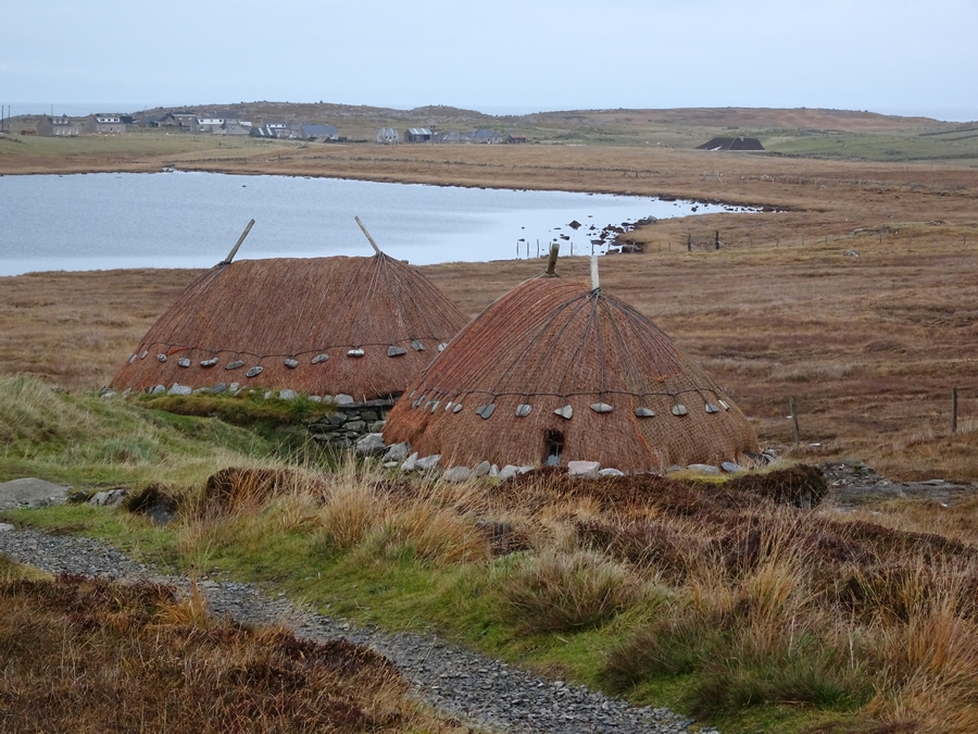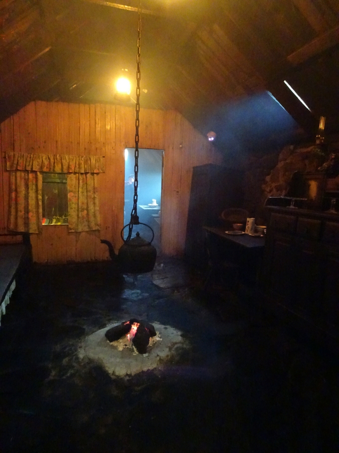 We then headed south to the blackhouse village at Garenin. I had missed it on the way to the Norse Mill on Monday, so we took the opportunity to look in in the passing. By now it was 15:00 and raining heavily. Even though the place was closed for the season, we managed to get into one of the blackhouses as a member of staff was present. He took the time to tell us about the history of the blackhouses.