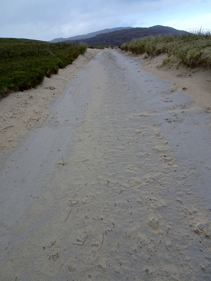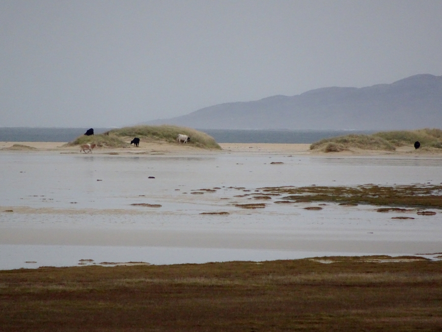 We headed to Luskentyre Beach next. We stopped off at Tarbert for petrol, at 137.9p a litre it cost £50 for just over half a tank. The rain stayed off, but the wind was even stronger and really cold. Wrapped up in hat and gloves, we took the short walk from the car park to the beach. As we approached the beach, we got the full force of the wind. We had to shelter behind the dunes to get some relief from the bitter wind, and to protect the camera tripod from its force. Even though it was cold, there were too many people on the beach and the light on the mountains was poor, so we didn't stay long.